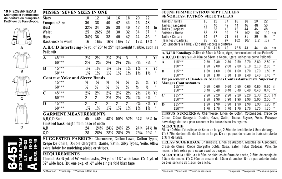 New Look Sewing Pattern 6451 Misses Tops 4 Styles Sleeve Options 10 22 39363464518 Ebay